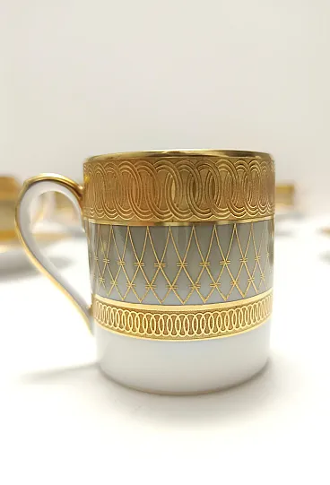 Made in Germany, 1960s. This set features 11 coffee cups and 11 plates. The coffee cups are made in fine and light porcelain, which is decorated with pure gold. They are made by Hutschenreuther Hohenberg, an important porcelain company that becomes part of the Rosenthal group in the 2000s. They are vintage therefore they might show slight traces of use, but they can be considered as in excellent original condition. Measures: Plate diameter 11.7 cm Cup width 6.7 cm Cup depth 4.8 cm Cup height 5.3 cm. Order it now! We sell the best quality pieces and we offer an amazing service: if it's not during night time, we answer within 2 hours and we absolutely love to follow every step of the purchase and even after. As matter of fact we really appreciate our customers’ feedback and when we receive pictures of our pieces in their new homes. We assist you during the process and answer all your questions. In addition to this, we always review the pieces before shipping, so that you receive the goods at its very best. We provide the best possible quotes and professionally and carefully pack the items. Insurance is included. And if there is any issue, it is our mission to make so you don't have to worry: we will always be there for you to assist in any way possible.