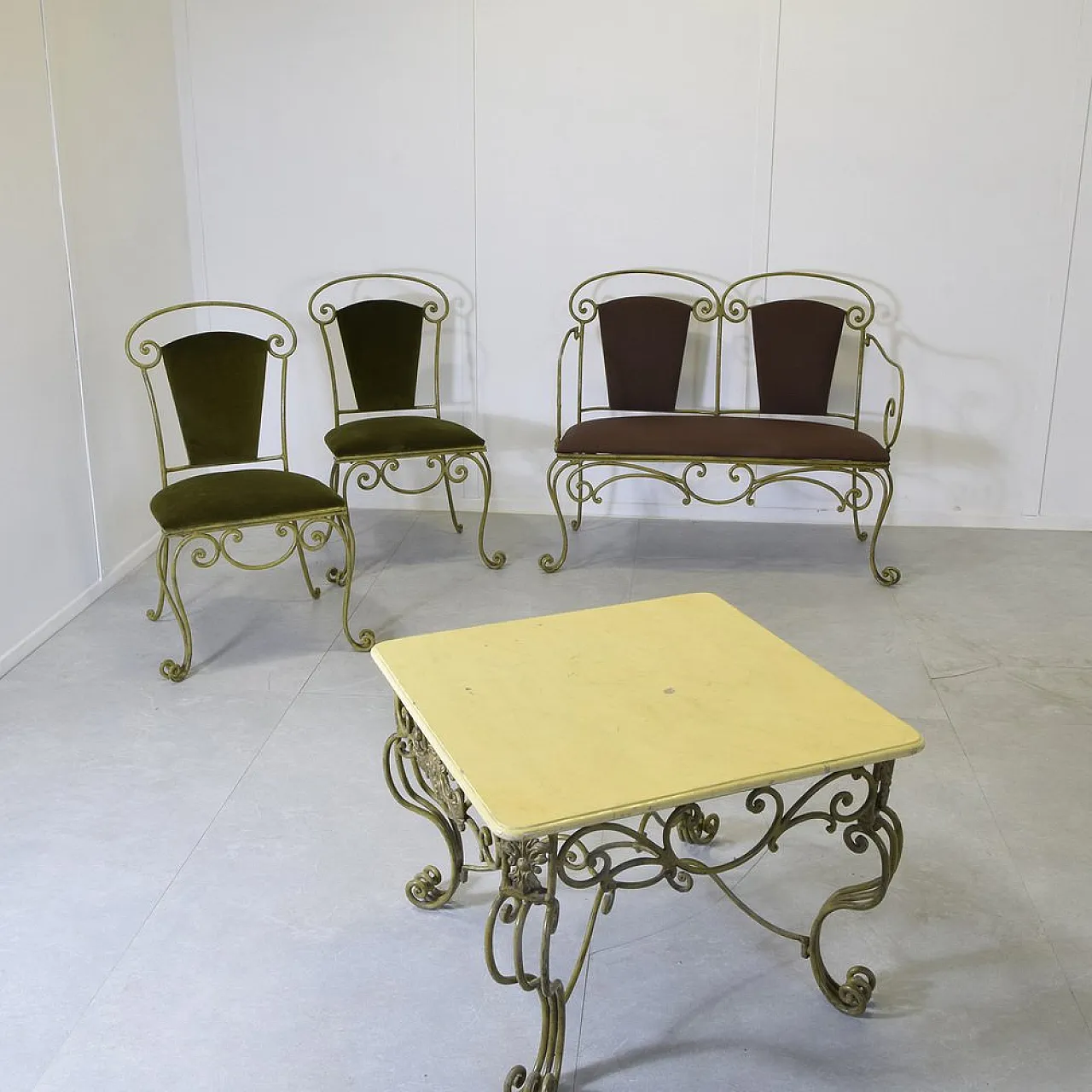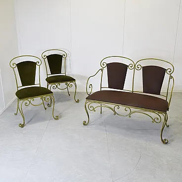 2-Seater sofa in wrought iron and velvet by Casa e Giardino, 1950s