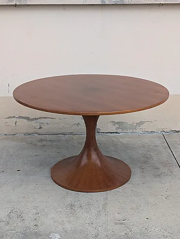 The Clessidra Round Table is a unique piece from the mid-century modern era, displaying the hallmarks of Italian craftsmanship and the innovative vision of Italian designer Luigi Massoni. This piece was produced in 1959 by renowned Italian furniture firm Mobilia.
