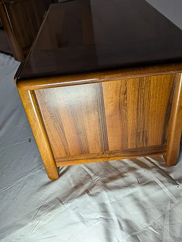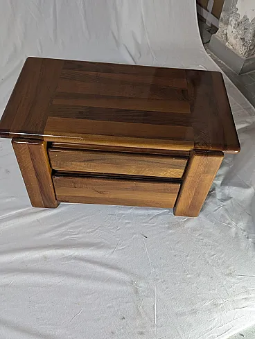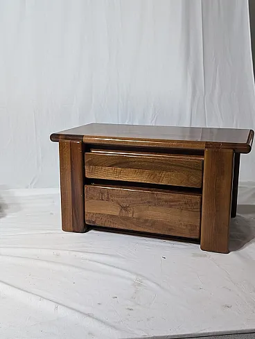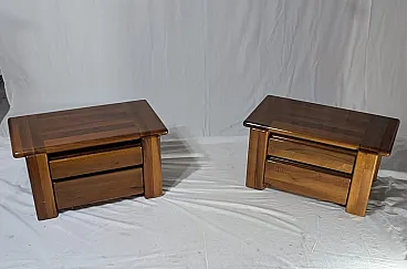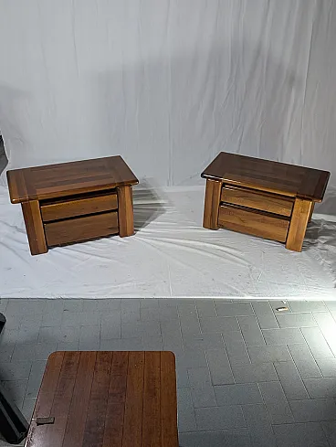 Introducing this set of 2 Walnut Bedside tables created by famous architect and designer Mario Marenco and produced by renowned Italian furniture firm Mobilgirgi in the 1970s. These refined masterpieces showcase an elegant appeal, courtesy of their clean fluid lines and blunted edges. The night tables are equipped with 2 drawers, providing ample storage space without compromising on style. This perfect blend of functionality and aesthetics makes these pieces of furniture a must-have addition to your bedroom. This set of bedside tables is more than just furniture: it is a statement of sophistication and style.