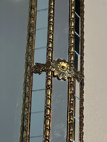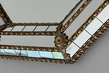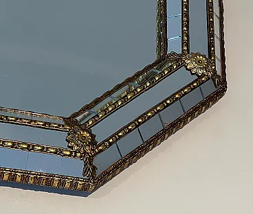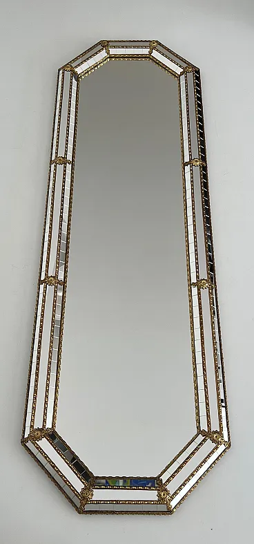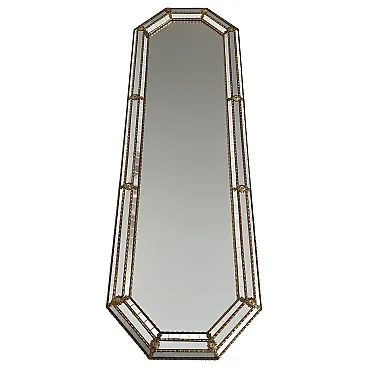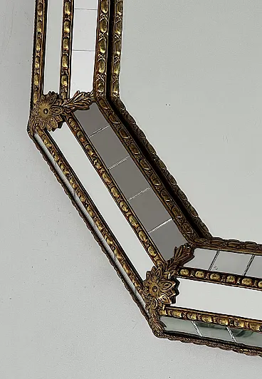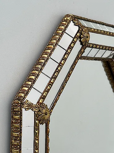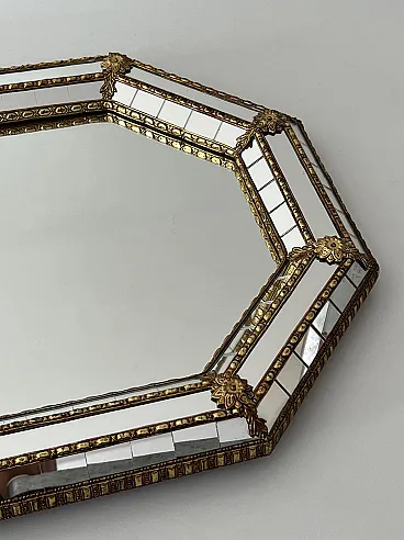Octogonal multi-facets mirror with brass garlands, 1970s