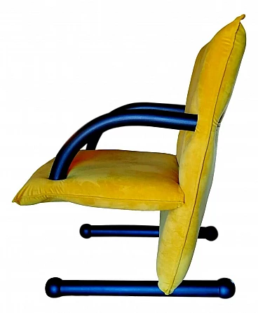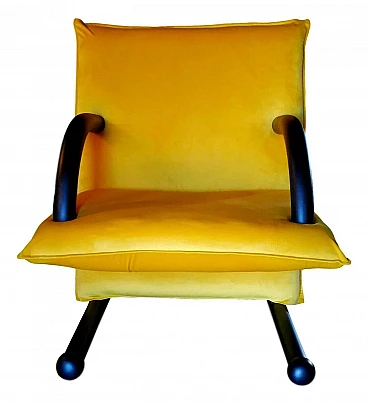 T-line model armchair, original design by Burkhard Vogtherr for Arflex, 80's. Completely restored, covered with mustard yellow velvet, in perfect condition. 40 cm seat height from the floor.