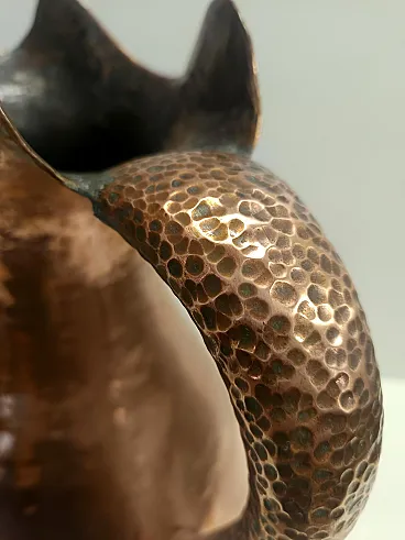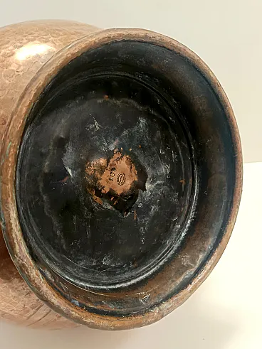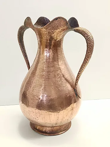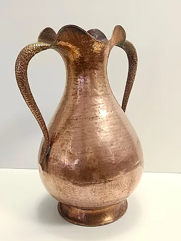 Made in Italy, 1940s- 1950s. This pitcher vase is made in hand embossed copper. Its minimal and classical, but still modern.+ It is a vintage piece, therefore it might show slight traces of use, but it can be considered as in excellent original condition and ready to become a piece in a home. Measures: Diameter: 44 - 31 cm Height: 57 cm. Order it now! We sell the best quality pieces and we offer an amazing service: if it's not during night time, we answer within 2 hours and we absolutely love to follow every step of the purchase and even after. As matter of fact we really appreciate our customers’ feedback and when we receive pictures of our pieces in their new homes. We assist you during the process and answer all your questions. In addition to this, we always review the pieces before shipping, so that you receive the goods at its very best. We provide the best possible quotes and professionally and carefully pack the items. Insurance is included. And if there is any issue, it is our mission to make so you don't have to worry: we will always be there for you to assist in any way possible.