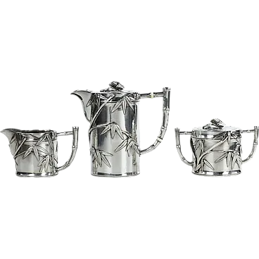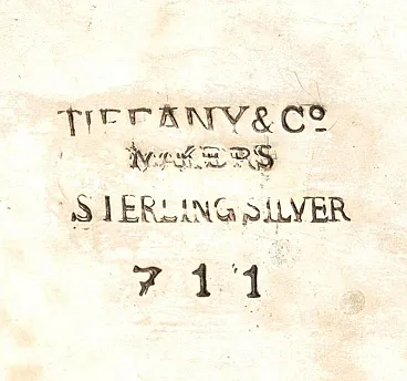 An exquisite milk jug from the famous jewelry house Tiffany & Co., made in the form of a fish with an elegant handle stylized as a tail. Produced between 1947 and 1965, this milk jug is a magnificent example of post-war American silver art. Its unique shape and graceful lines reflect the characteristic Tiffany style of that time, combining elements of Art Nouveau with an emphasis on natural motifs and neoclassical modernism, characteristic of the mid-20th century. On the bottom of the product is stamped the hallmark "TIFFANY & CO. MAKERS - STERLING" product number 711 corresponds to the period of manufacture of the model in 1856, indicating its authenticity and high quality of workmanship from 925 sterling silver. Dimensions: height 6.5 cm, width 13.3 cm, depth 5 cm. Weight: 156.7 g. This rare collectible will be a great addition to an antique collection or an exquisite element for table setting, emphasizing the prestigious style and bringing the authentic aesthetics of Tiffany & Co. to the interior.
