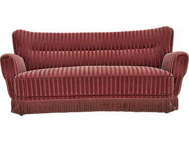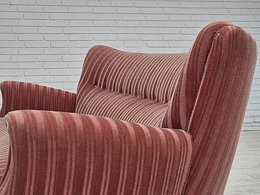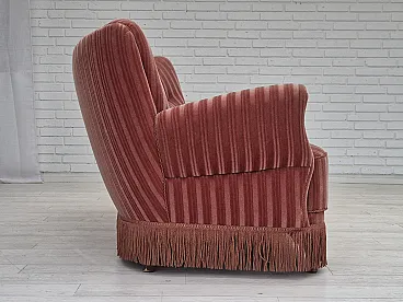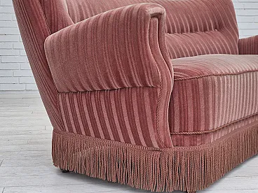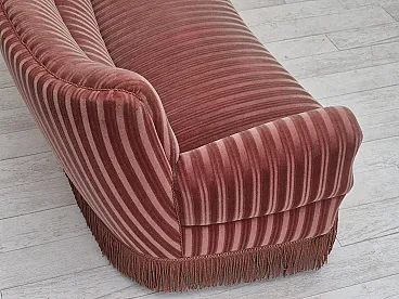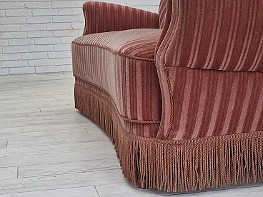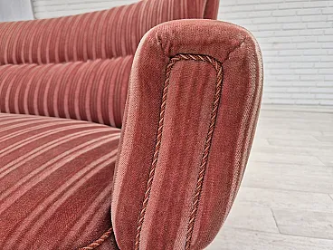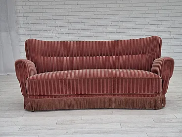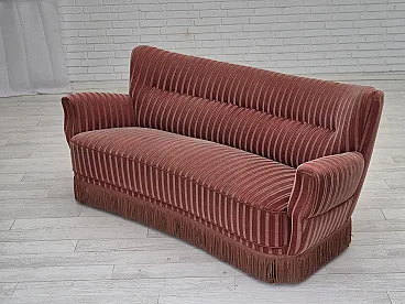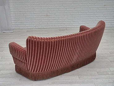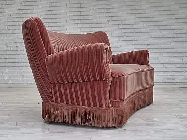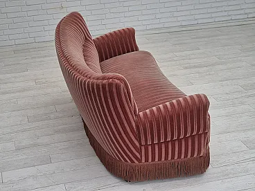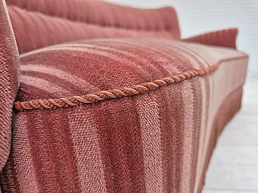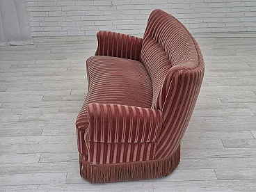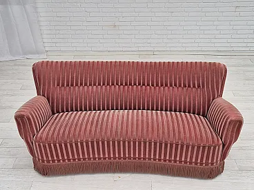 Danish 3-seater curved sofa, pink-salmon velour, 1960s