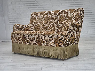 Danish 2-seater sofa, brown beige fabric, 1960s,
