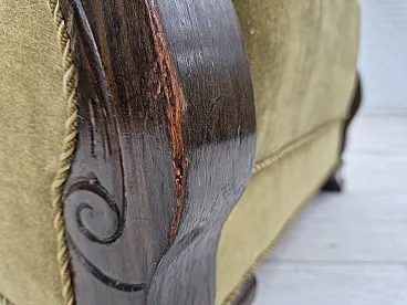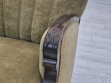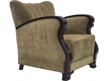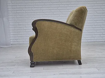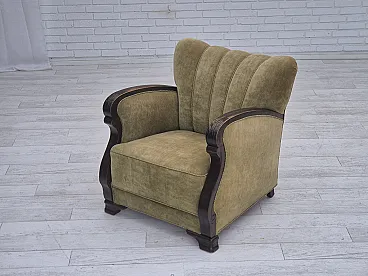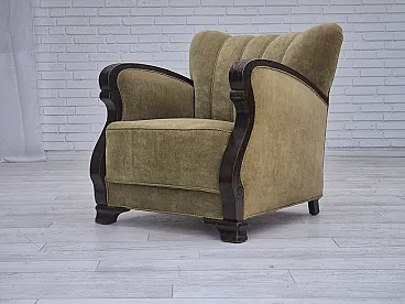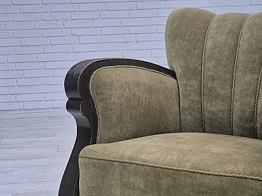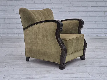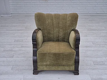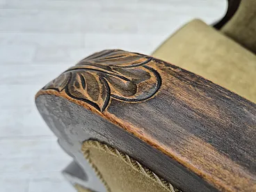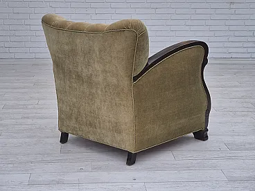 1950s, Danish relax armchair, green furniture velour, beech wood.