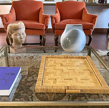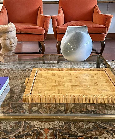 Hollywood Regency Bamboo and Wicker Tray, Italy 1970s
