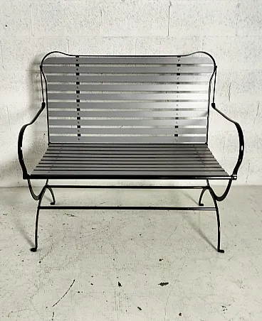 Camilla Metal Bench by Achille Castiglioni and Giancarlo Pozzi for Zanotta 80s Structures in Painted Steel, Black Color, Seat and Backrest With Slats in Laminate Plastic, Gray Color. In Really Good Condition, with minimal Signs of Age and Use. Dimensions: W 100 cm - D 60cm - h 92/44 cm