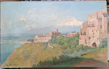 Etna by Mario Mirabella, oil on panel, early 20th century