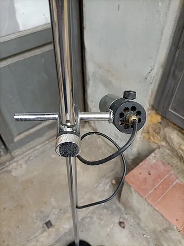 70s floor in chromed steel. Adjustable element, vintage object of Italian design, working. Slight signs of the time.