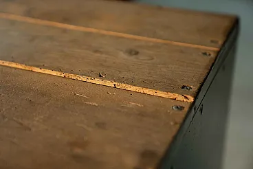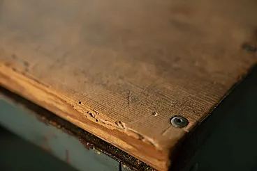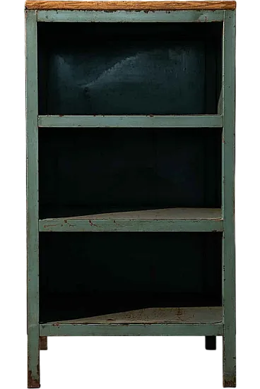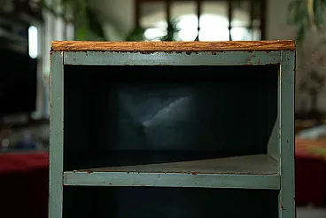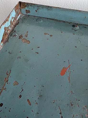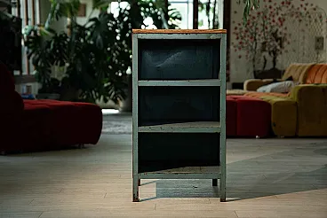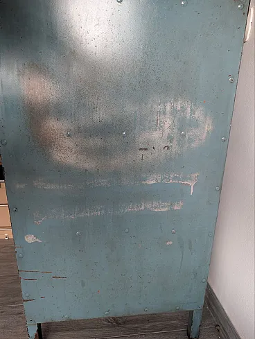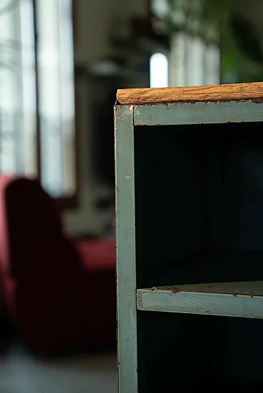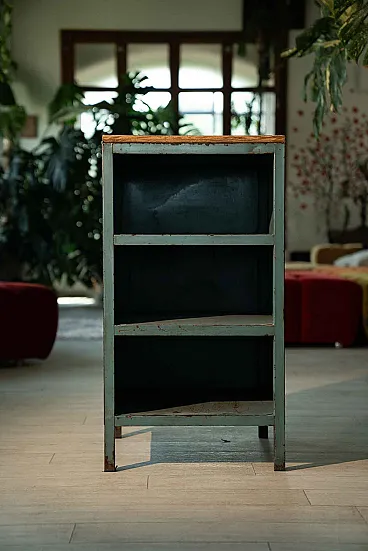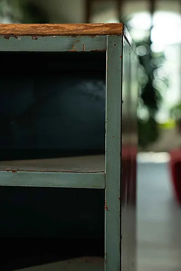 They come from the same workshop of the archive drawers. They were used to store work tools. A wooden top was installed on one of the two furniture, probably to work pieces. Blue sugar paper, they are perfect in the kitchen or in the bathroom, as an original furnishing element. Again, Galeotto was the color. The signs of time and use are evident, they were used to store the workshop tools and therefore report a sign of the instruments when they were taken and stored, but they remain a truly suggestive piece.