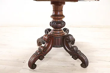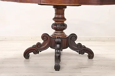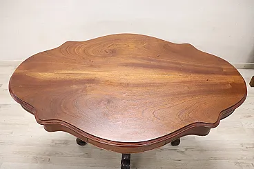 This exquisite Italian table, made in the mid -nineteenth century during the period Luigi Filippo, shows the timeless elegance of precious walnut wood. The "biscuit" shape adds a distinctive touch, while two small but practical drawers improve its functionality. The table is supported by a robust central tree turned and four feet intricately carved, which reflect the skill of the time.