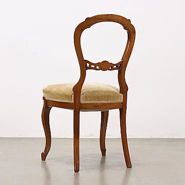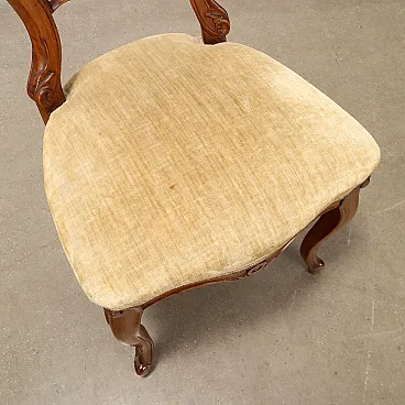 Group of four Louis Philippe chairs in walnut, open backrest with leaf carvings and scrolls, wavy legs, padded seat. Italy, second quarter of the 19th century.