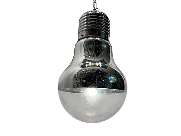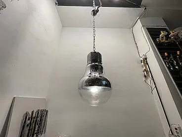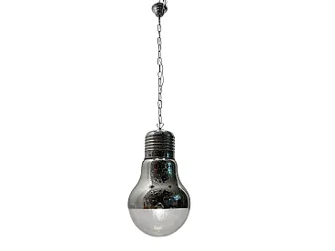 Item Name - Industrial Chrome Glass Pendant, 1980s