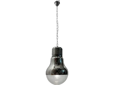 Additional item Information - Chrome Industrial Light Pendant Glass Shade Top of Glass Shade Is Coated In A Chrome Finish Height Including Wire and Ceiling Canopy 105 cm Width 30 cm Height Without Chain 50 cm