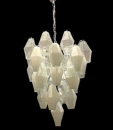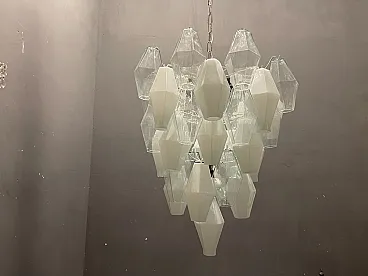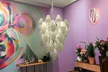 Additional item Information - Large Polygon Glass Chandelier Composed of White and Clear Murano Glass Polygon Shapes. Height Including Chain and ceiling Canopy 137 cm Height Without Chain and ceiling Canopy 80 cm Width 62 cm features 8 lights Requires E14 Light Bulbs New Wiring Installed Compatible With Uk Europe USA