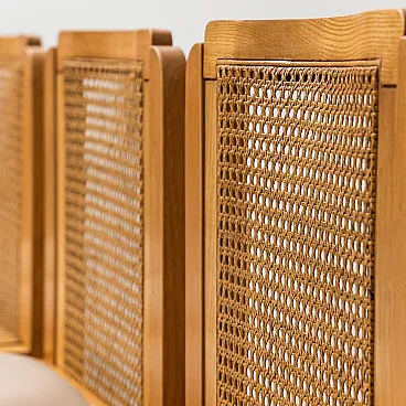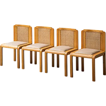 Set 4 wooden chairs, Vienna and velvet straw, 70s