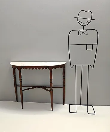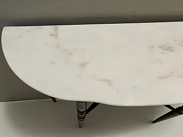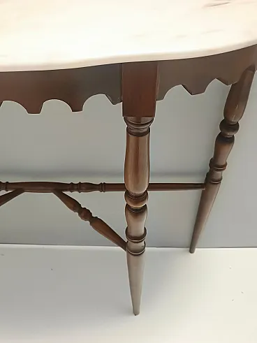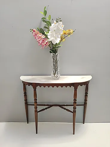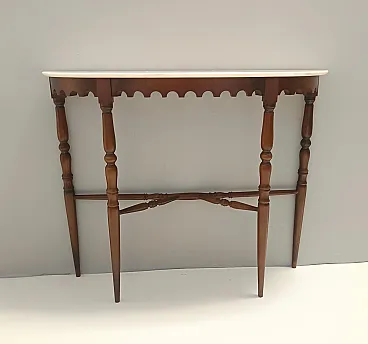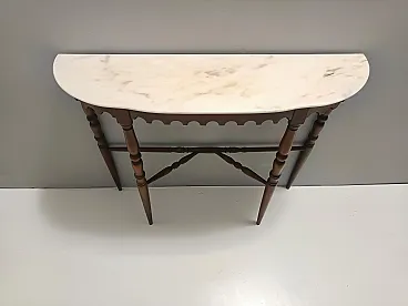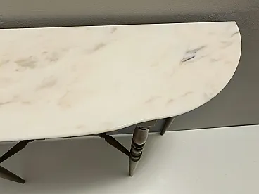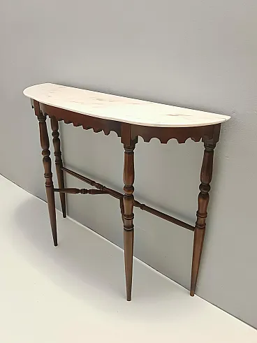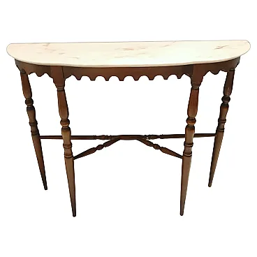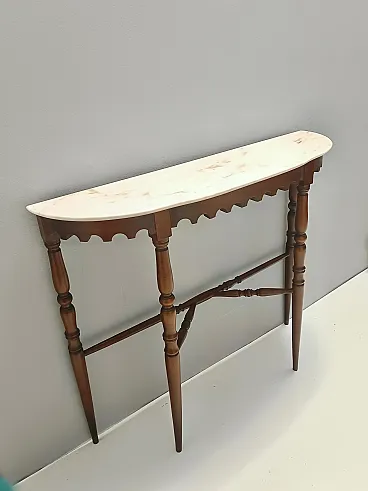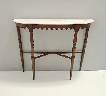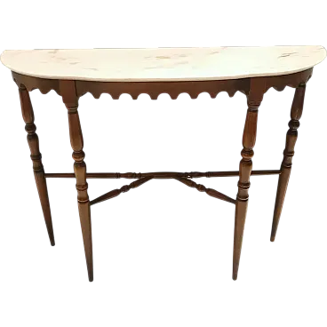 Made in Italy, 1960s. This console table features a demilune Portuguese pink marble top and a beech frame. It is a vintage item, therefore it might show slight traces of use, but it can be considered as in excellent original condition and ready to become a piece in a home. Measures: Width 103 cm Depth 29 cm Height 85 cm. Order it now! We sell the best quality pieces and we offer an amazing service: if it's not during night time, we answer within 2 hours and we absolutely love to follow every step of the purchase and even after. As matter of fact we really appreciate our customers’ feedback and when we receive pictures of our pieces in their new homes. We assist you during the process and answer all your questions. In addition to this, we always review the pieces before shipping, so that you receive the goods at its very best. We provide the best possible quotes and professionally and carefully pack the items. Insurance is included. And if there is any issue, it is our mission to make so you don't have to worry: we will always be there for you to assist in any way possible.