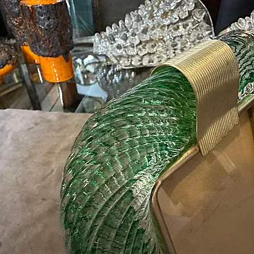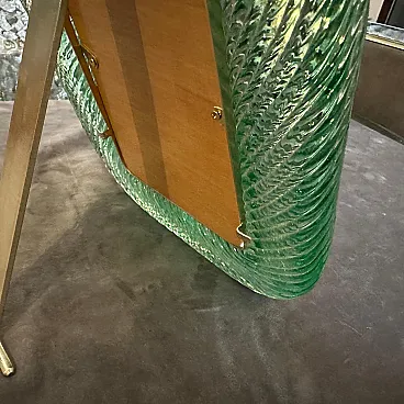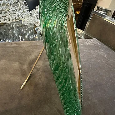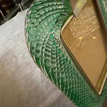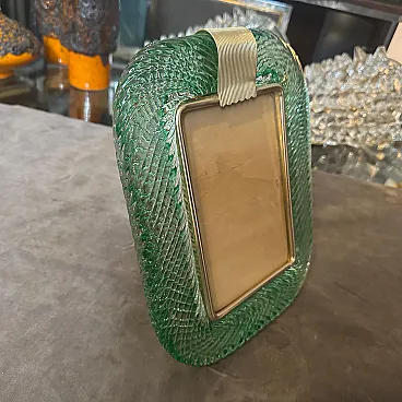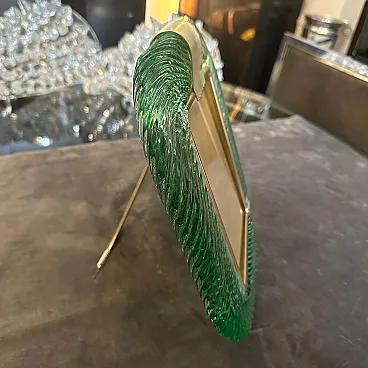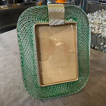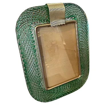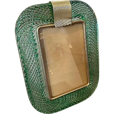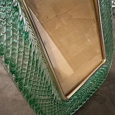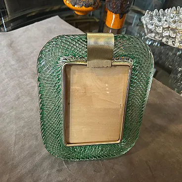 A light green murano glass picture frame designed and manufactured in Venice in the style of Barovier, it's in lovely conditions. This vintage photo frame is a beautiful and elegant piece of decor that is perfect for displaying your favorite memories in style. Barovier is a renowned Italian glass-making company that has been in operation since 1295, and their products are highly valued by collectors and design enthusiasts alike. The photo frame features a rectangular shape with a solid brass clean internal frame. The outer part of the frame is made of green clear Murano glass. The glass has been carefully crafted by skilled artisans, with each piece being unique due to the nature of the glass-making process. This photo frame is a perfect example of the Art Deco style that was popular in the early 20th century, characterized by bold geometric shapes, sleek lines, and a focus on luxury and craftsmanship. The photo frame is a timeless piece that will add elegance and sophistication to any room.