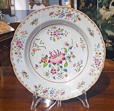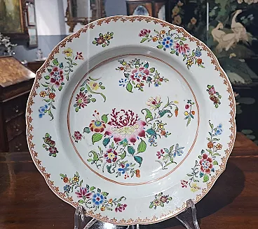 Pair of porcelain dishes with the mystery edge and floral decorations in the colors of the "pink family". China, Qianlong era (1736 - 1795). The diameter is 22.5 cm.