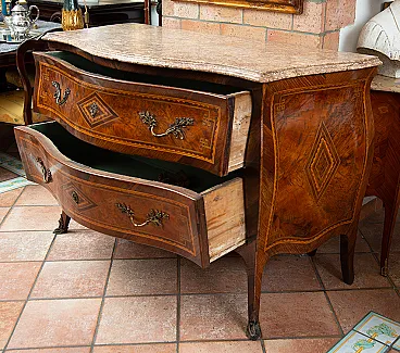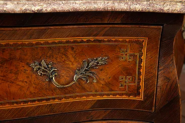 Description: Antique drawer Louis XV Neapolitan in precious exotic woods with marble top.