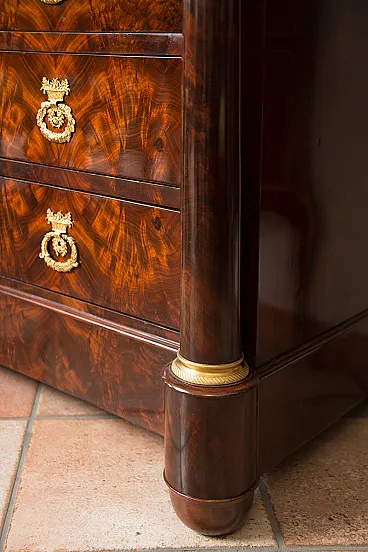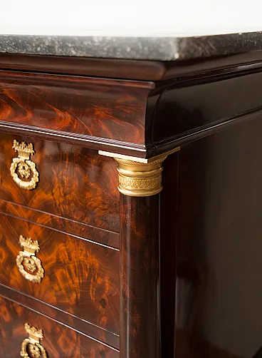The two cantons are characterized by two mahogany feather columns ending with finely chiseled golden bronze capitals and base.