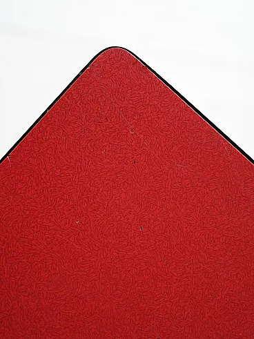 Scandinavian table of the 1960s with tapered legs in wood and a red flap with a contrasting black edge.