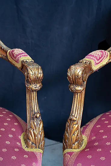 Pair of Napoleon III armchairs in golden and carved wood, 19th century