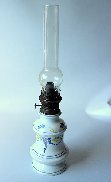 Antique oil lamp from the 1910s made of ceramic, glass and metal 1