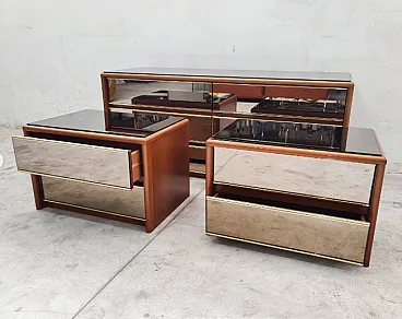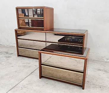 Mobilgiri chest of drawers with bedside tables, wood and mirror, 1970s