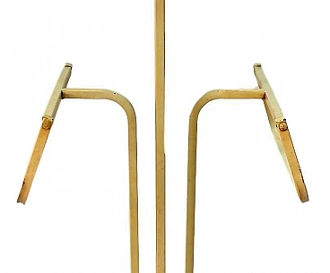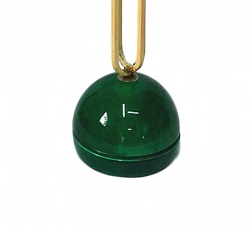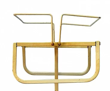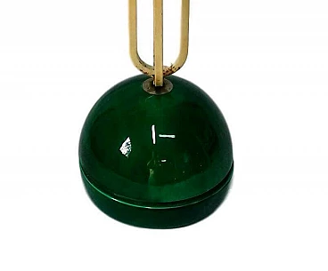 Original towel rack of the 60's, of certain Italian design of the time, consisting of a spherical ceramic base in bright green color and a structure in sand-colored metal profile with 6 towel handles placed in a staggered way so as not to overlap each other in a fall.