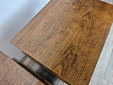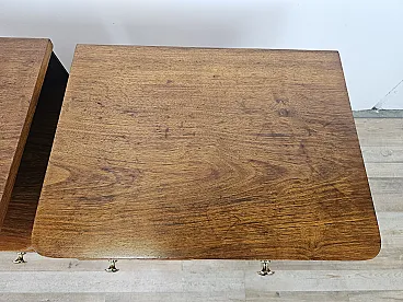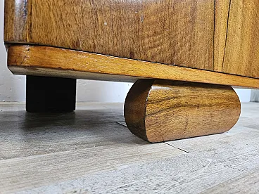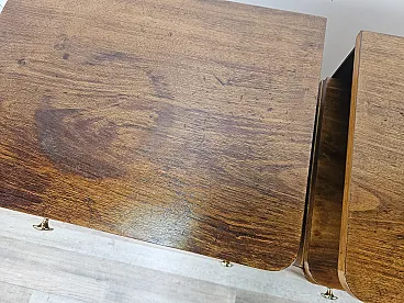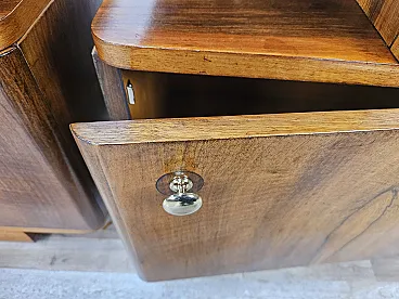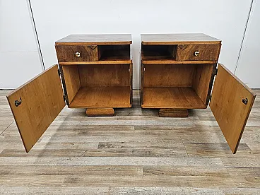 Refined pair of Beds Art Decò 1940 in walnut root with drawer and container compartment, all enriched by a beautiful set of brass knobs. The bedside tables were polished with oil and shellac, new knobs