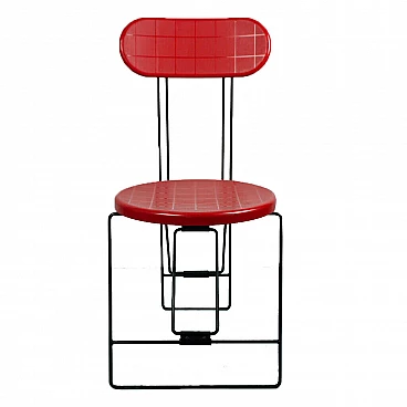 Chair with seat and back in red ABS and black metal tubulars, "Cricket" model by Adries Van Onck and Kazuma Yamaquchi. Production Magis Italy 1983. Discreet conditions with some signs of time visible in the photo.