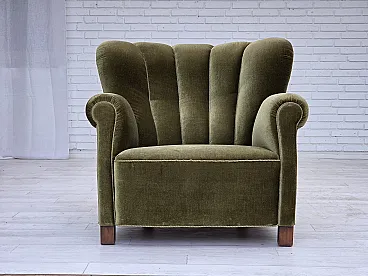 Danish relax armchair dark green velour, 1960s