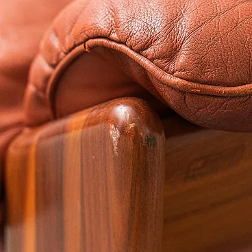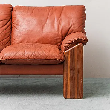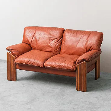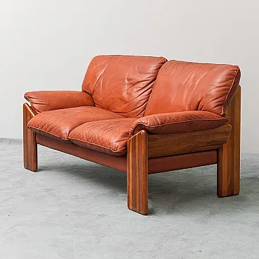 2 -seater sofa in leather and wood Mario Marenco for Mobilgirgi, 70s