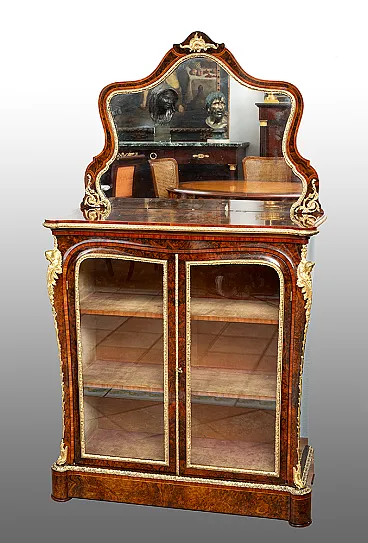 Victorian showcase in walnut root with grafts of elements, 19th centur