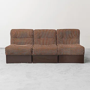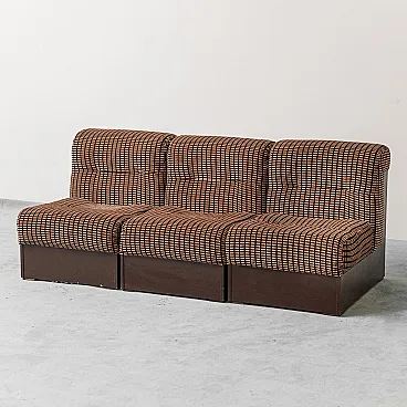 3 -seater modular sofa made in the 70s. Brown velvet coating. Base and wooden structure. Good condition, as shown in the photo.