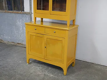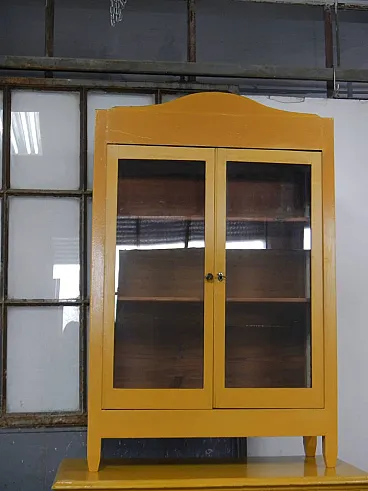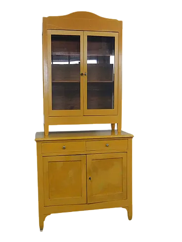 Yellow oak rustic sideboard and glass cabinet, 1920