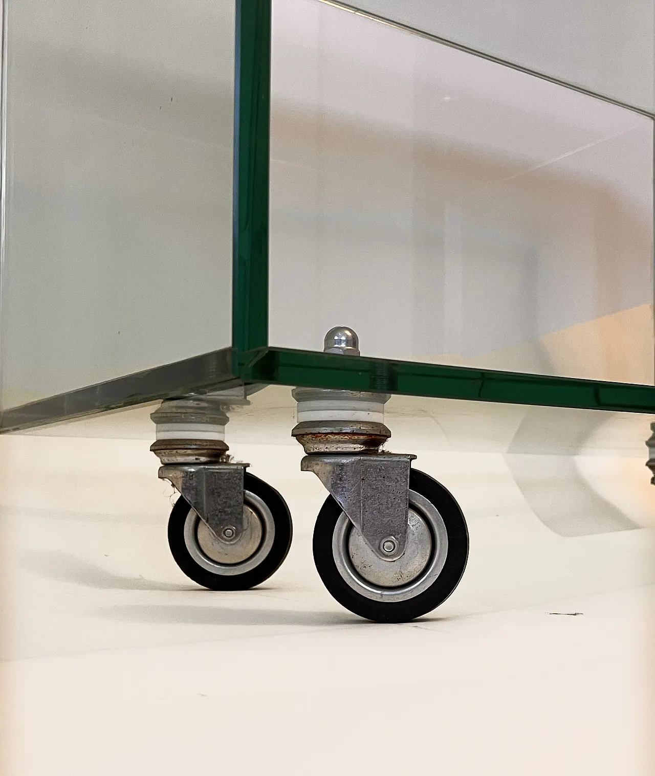 Elegant TV door entirely in tempered glass, with modern and minimalist design. It is equipped with 4 pivoting wheels, which make it practical and easily moveable. Perfect for modern environments or for those looking for a discreet and elegant solution. ✔ material: tempered glass often ✔ Essential and transparent design, it adapts to any furniture ✔ pivoting wheels for easy movement ✔ Conditions: excellent, without obvious scratches