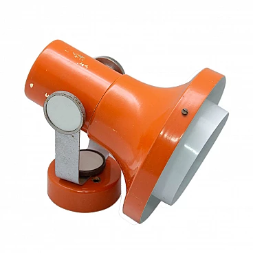 This table lamp or spot light was designed by the Czech architect Pavel Grus for Kamenicky Senov company in the 1960s. The inclination of the head are adjustable. This metal lamp is painted in orange is in good condition with slight marks of age and using. Fully functional.