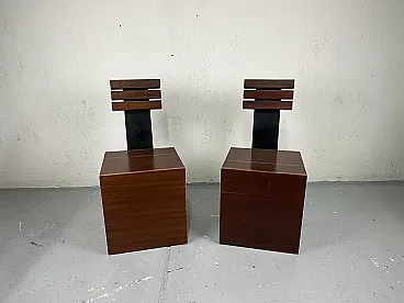 Pair of cubic metal and wood armchairs, 1980s