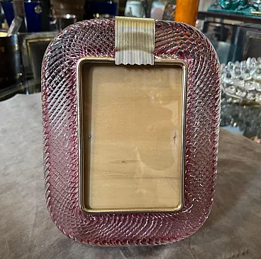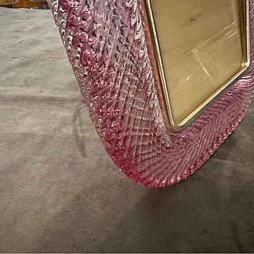 A pink Murano glass picture frame designed and manufactured in Venice in the style of Barovier, it's in lovely condition. The vintage photo frame is a beautiful and elegant piece of decor that is perfect for displaying your favorite memories in style. Barovier is a renowned Italian glass-making company that has been in operation since 1295, and its products are highly valued by collectors and design enthusiasts alike. The photo frame features a rectangular shape with a solid brass clean internal frame. The outer part of the frame is made of pink Murano glass, carefully crafted by skilled artisans, with each piece being unique due to the nature of the glass-making process. This photo frame is a perfect example of the Art Deco style that was popular in the early 20th century, characterized by bold geometric shapes, sleek lines, and a focus on luxury and craftsmanship. The photo frame is a timeless piece that will add elegance and sophistication to any room
