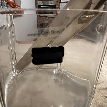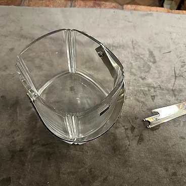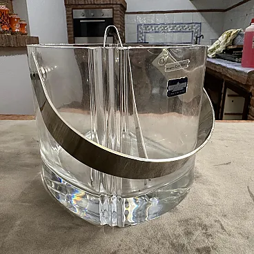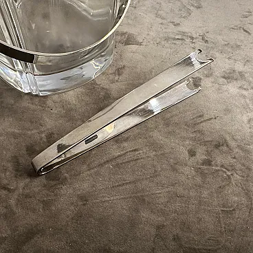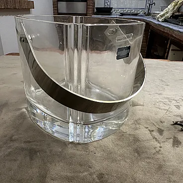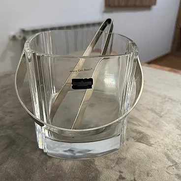 This 1970s modern heavy crystal ice bucket is a stunning example of Italian design created by Cini Boeri for Arnolfo di Cambio, paired with Lino Sabattini's elegant ice tongs by Christofle Thick, high-quality crystal glass with a stainless steel handle and silver plated ice tongs . A geometric, faceted glass body that reflects light beautifully, giving it a sleek and sophisticated look. A curved silver-toned metal handle adds a modernist touch and functionality . Tongs Designed by Lino Sabattini world known for his minimalist yet sculptural metalwork. This iconic piece embodies Cini Boeri’s vision for functional yet artistic homeware and is a perfect addition to a mid-century modern or contemporary bar setup. The two pices are in very good condition overall, they have original stickers, tongs are hall marked Christofle.