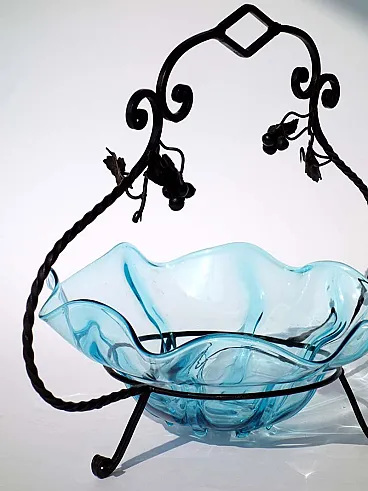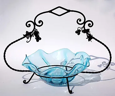 Art Nouveau glass and wrought iron bowl, early 20th century