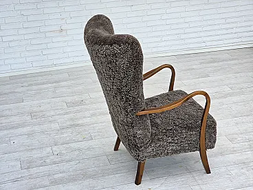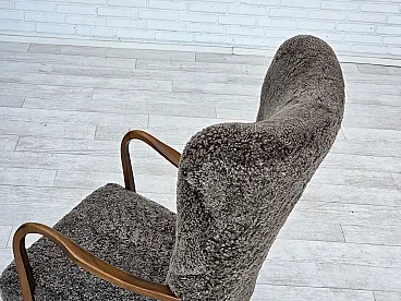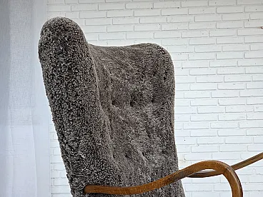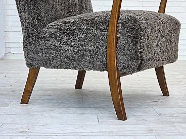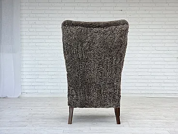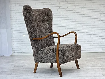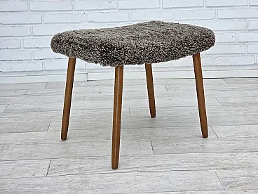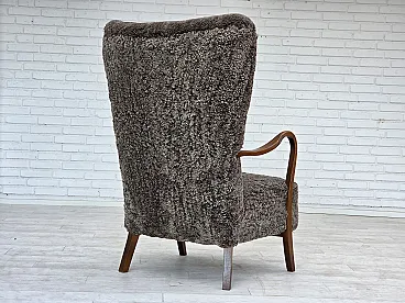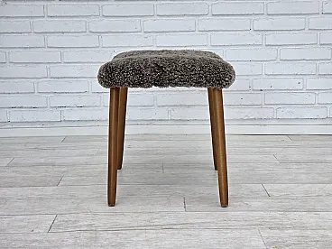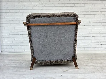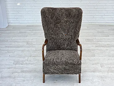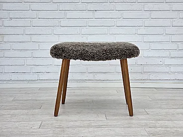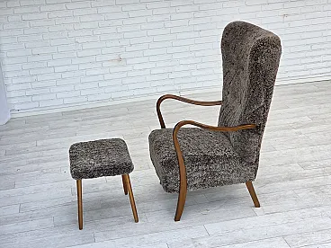 Reupholstered Danish armchair with stool sheepskin, 1960s