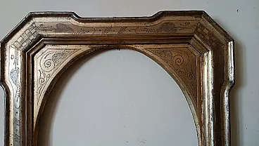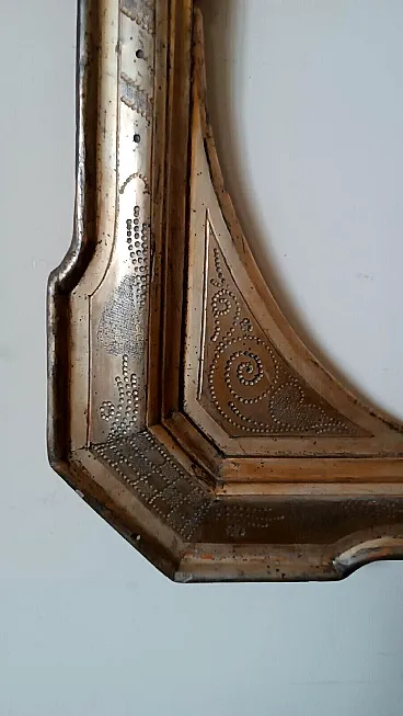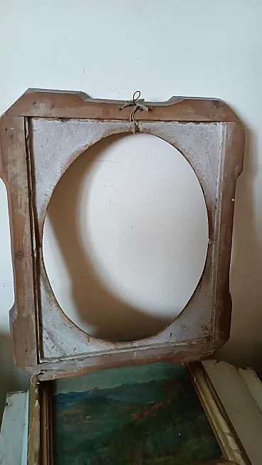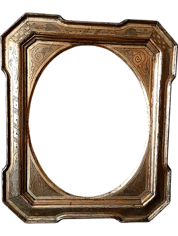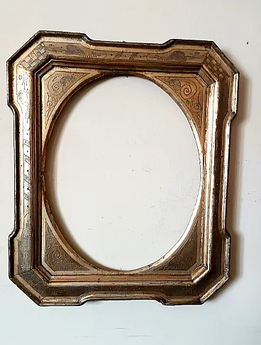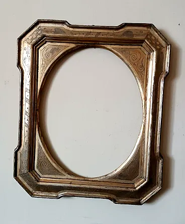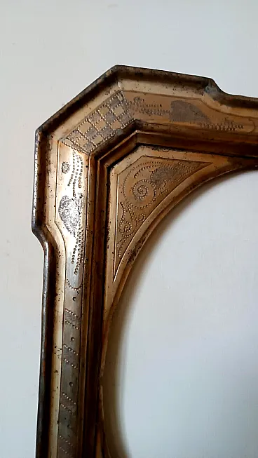 Tray frame with oval light in pyrographed gilded wood, 19th century