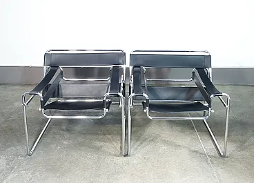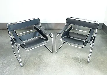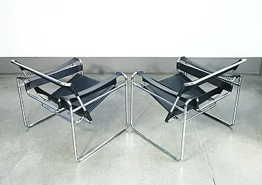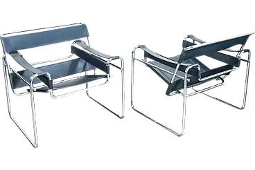 Pair of Wassily chairs, Design Marcel Breuer in chromed metal and leather. Reburse of the 70s on the original design of 1925. The chairs are in very good conditions, as can be seen from the attached photos. It reports normal traces of time and use visible in the photo.