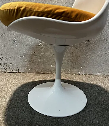 Dining chairs designed by Eero Saarinen, produced by Knoll International in the USA around 1970. This iconic model is known as the "Tulip" chair. It has a comfortable cushion in period fabric.