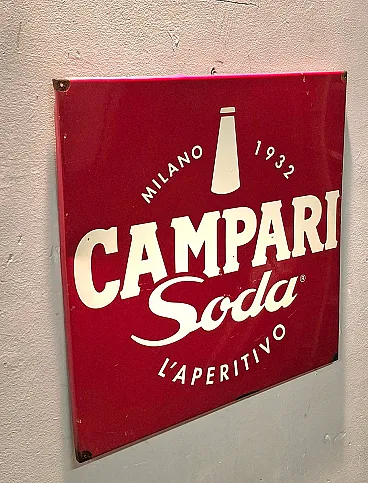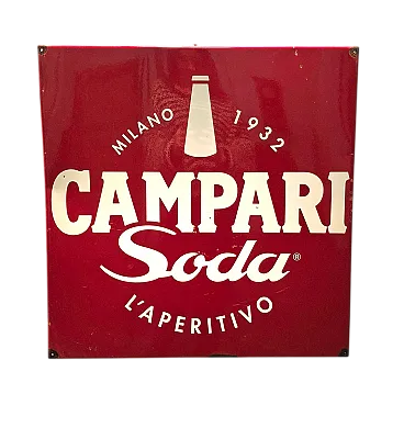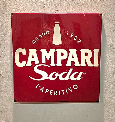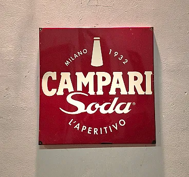 Campari Soda square advertising sign in iron and enamel, slightly worn with signs of aging.